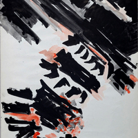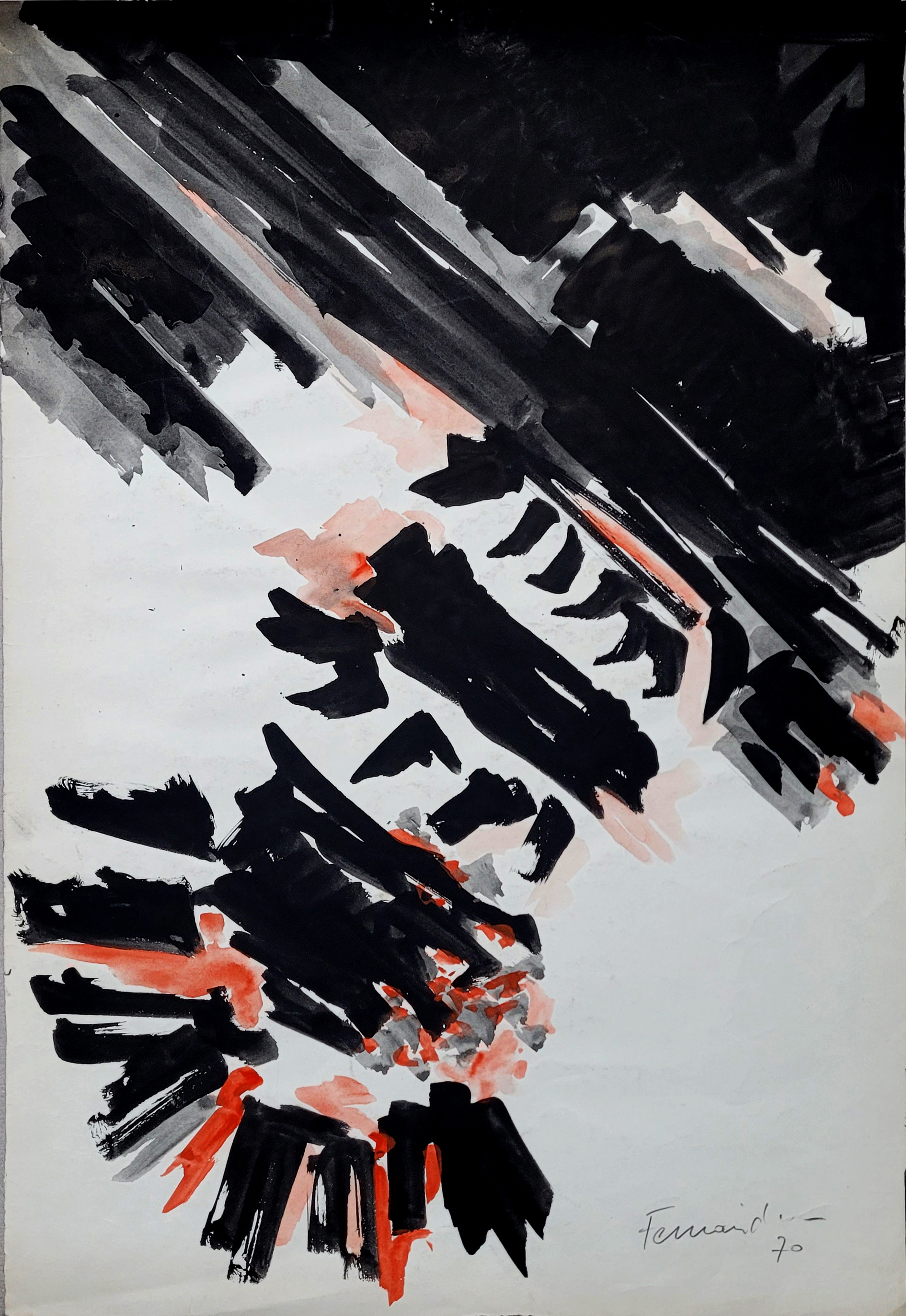 - Imagen abstracta en diagonal en rojo y negro sobre fondo blanco